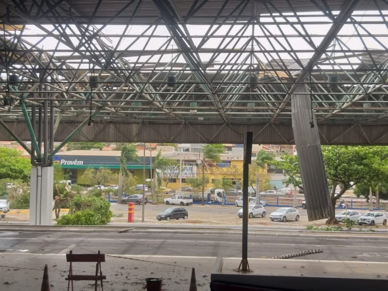 Uma árvore de grande porte caiu no estacionamento e parte do telhado de zinco do terminal foi arrancado. Equipes da Secretaria de Meio Ambiente e Bem-Estar Animal iniciaram o corte da árvore e a limpeza do local; e da Infraestrutura e da EMDURB estão atuando no restabelecimento da energia, na retirada das placas de zinco e na manutenção do telhado. Passageiros e funcionários foram retirados e o terminal de embarque e desembarque isolado. Ainda não há previsão para a liberação do local.